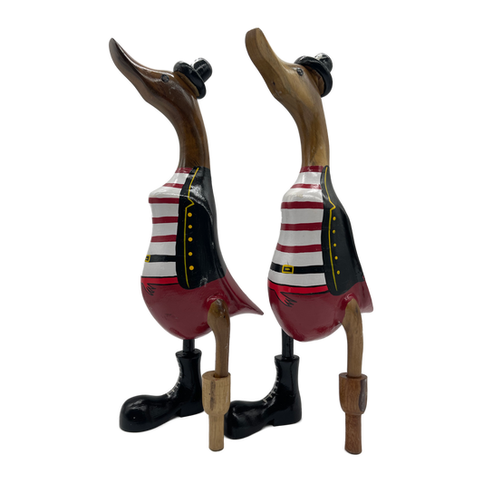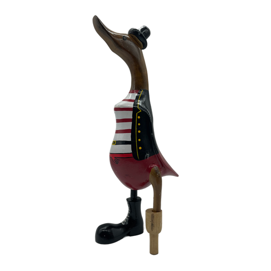 A Duck Wooden Red With White Stripes And Hat 25cm