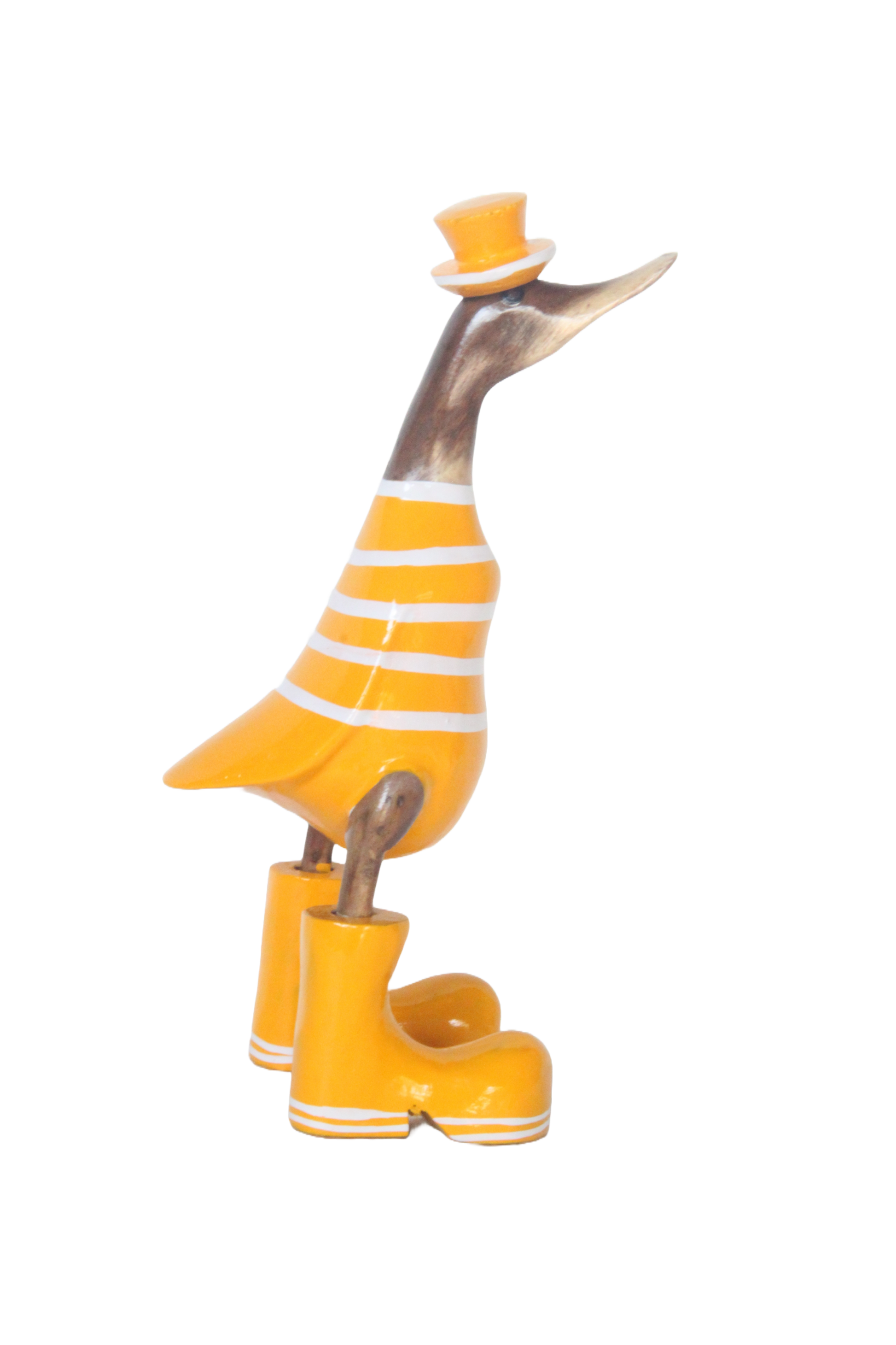 A Duck Wooden Yellow With White Candy Stripes And Hat
