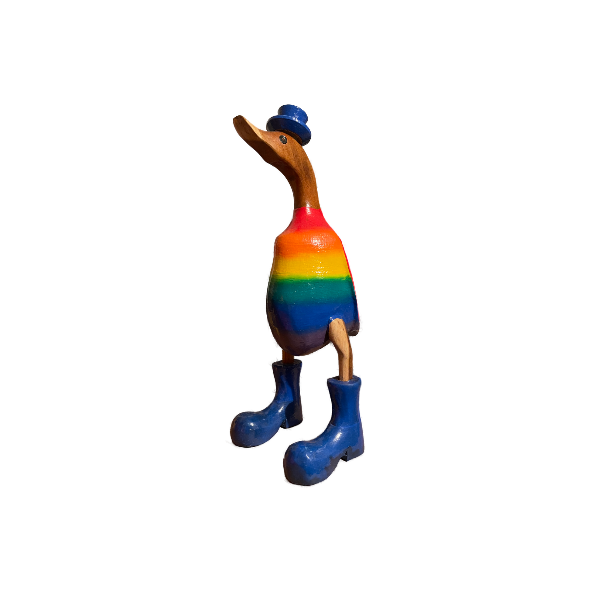 A Rainbow Wooden Duck Red Or Blue Hat Just Landed